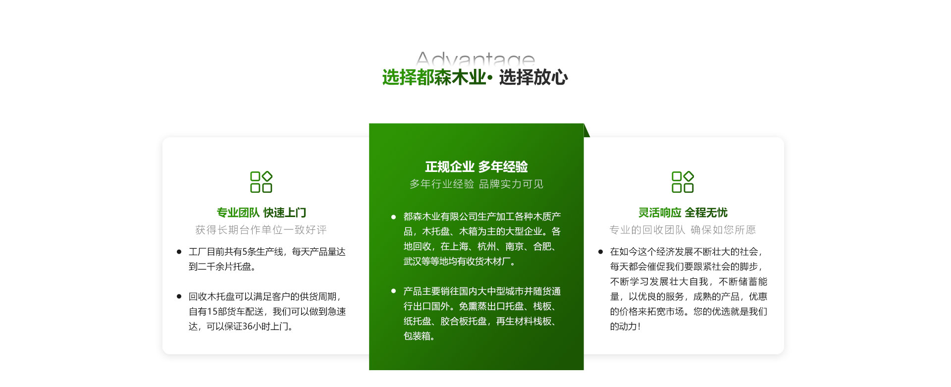 都森木業有限公司是一家以回收木托盤、木材,生產加工各種木質產品,木托盤、木箱為主的大型企業。自建公司以來,我公司根據市場經濟的發展趨勢,在經濟逐步前進的前提下發展壯大自己,不斷引入先進的生產設備,科學的管理理念,過硬的生產技術和嚴密的質量管理體系。加工:公司下轄木材加工廠,組裝廠,并備有大型標準烘房,多功能平板刨,壓刨,挖槽,機械設備等。產品主要銷往國內大中型城市并隨貨通行出口國外。免熏蒸出口托盤、棧板、紙托盤、膠合板托盤,再生材料棧板、包裝箱。工廠目前共有5條生產線,每天產品量達到二千余片托盤??梢詽M足客戶的供貨周期,自有10部貨車配送,我們可以做到急速達。回收:公司建立以來長期以現金收購各種規格木托盤,塑料托盤,棧板,復合托盤,木箱,收購價格以托盤木箱的規格、使用情形、新舊程度、材質為估價標準??缮厦婵簇?。我們將以豐富的知識,提供“量身定做”的方案來服務和滿足每一用戶不同的需求,現金...